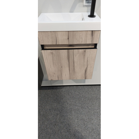 BRAUER SolutionPlus Fonteinonderkast 40x45x22cm 1 linksdraaiende deur Birch met Foggia fontein 1 kraangat mat wit SHOWROOMMODEL