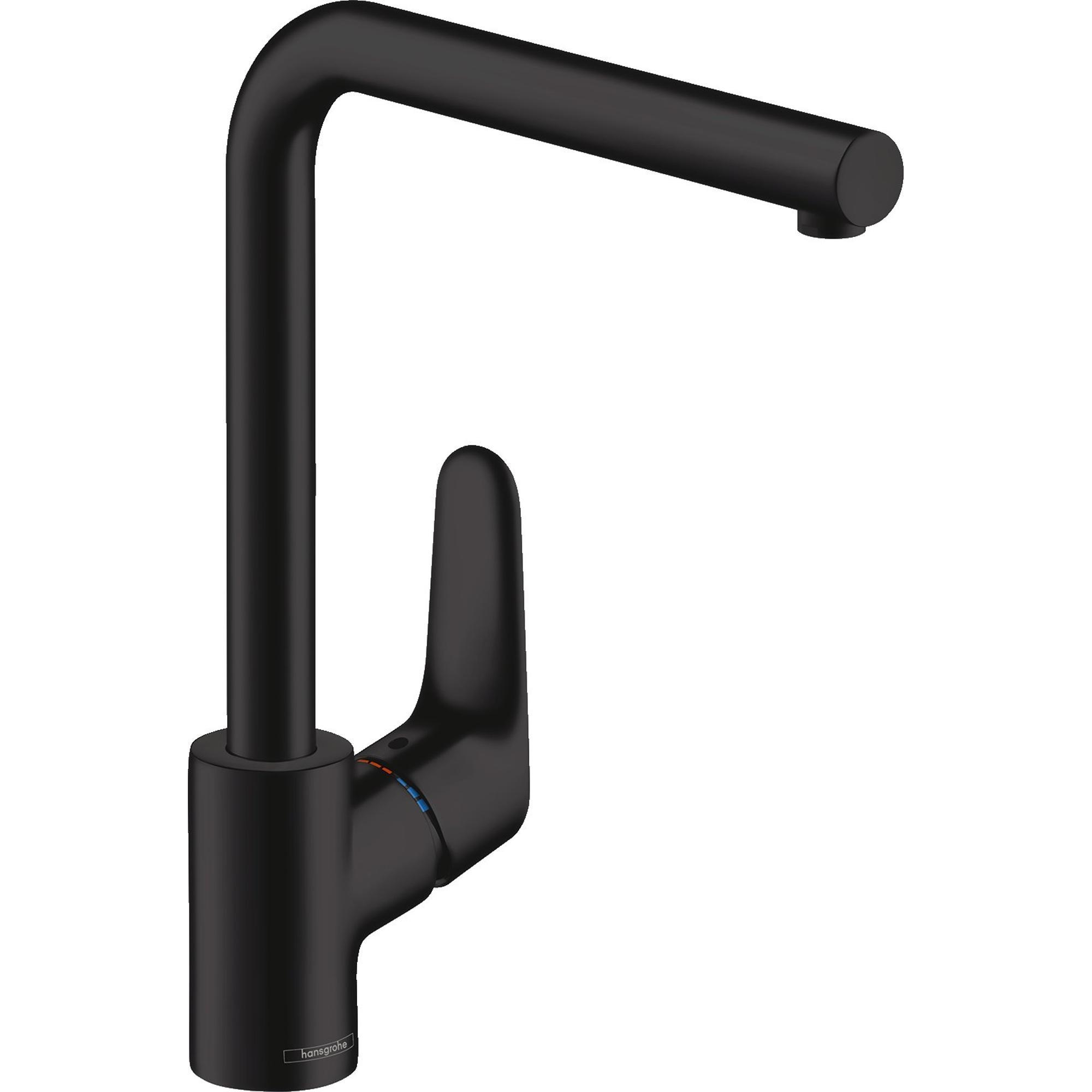 De Focus M41 ééngreeps keukenmengkraan 280 met draaibare uitloop in mat zwart van hansgrohe geeft veel comfort en design. De moderne vormtaal met L-uitloop en 277 mm grote afstand tussen uitloop en aanrecht maakt plaats voor de dagelijkse keukenroutine en maakt het eenvoudig vullen van zeer grote emmers mogelijk (ComfortZone). Het draaibereik van de keukenkraan kan in drie standen (110°, 150° of 360°) worden ingesteld en past perfect bij verschillende spoelbakken. Bijzonder flexibel: De handgreep kan naar keuze aan de rechter- of de linkerkant worden geplaatst. Precies wat past bij de inbouwsituatie ter plaatse of wat voor de bediening het aangenaamst is. Met de duurzame kwaliteitsfinish in de trendkleur mat zwart wordt de keukenmengkraan een expressief designstatement aan de spoelbak.