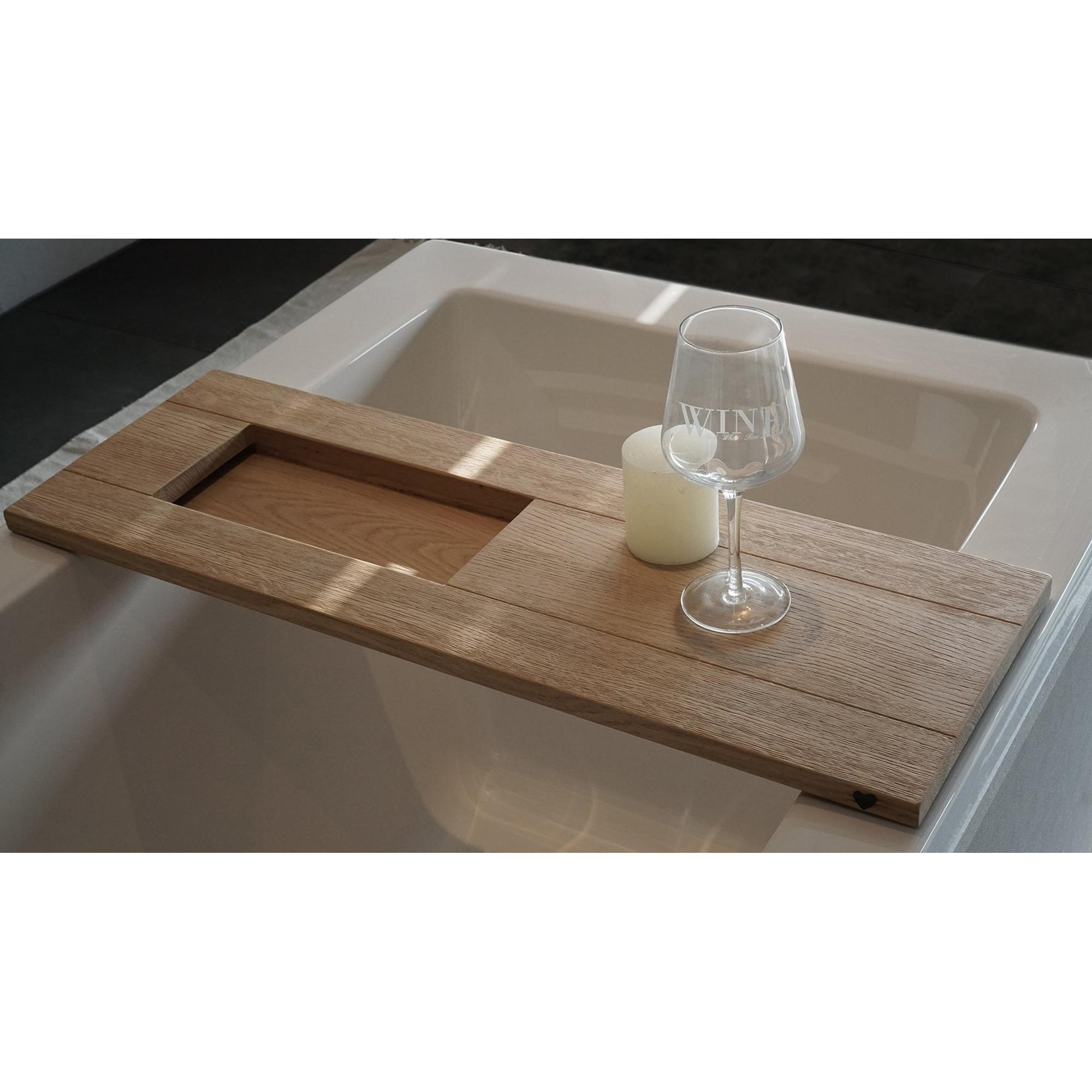 Board is een badplank van doorleefd, massief geolied eikenhout en voorzien van een geïntegreerd bakje.