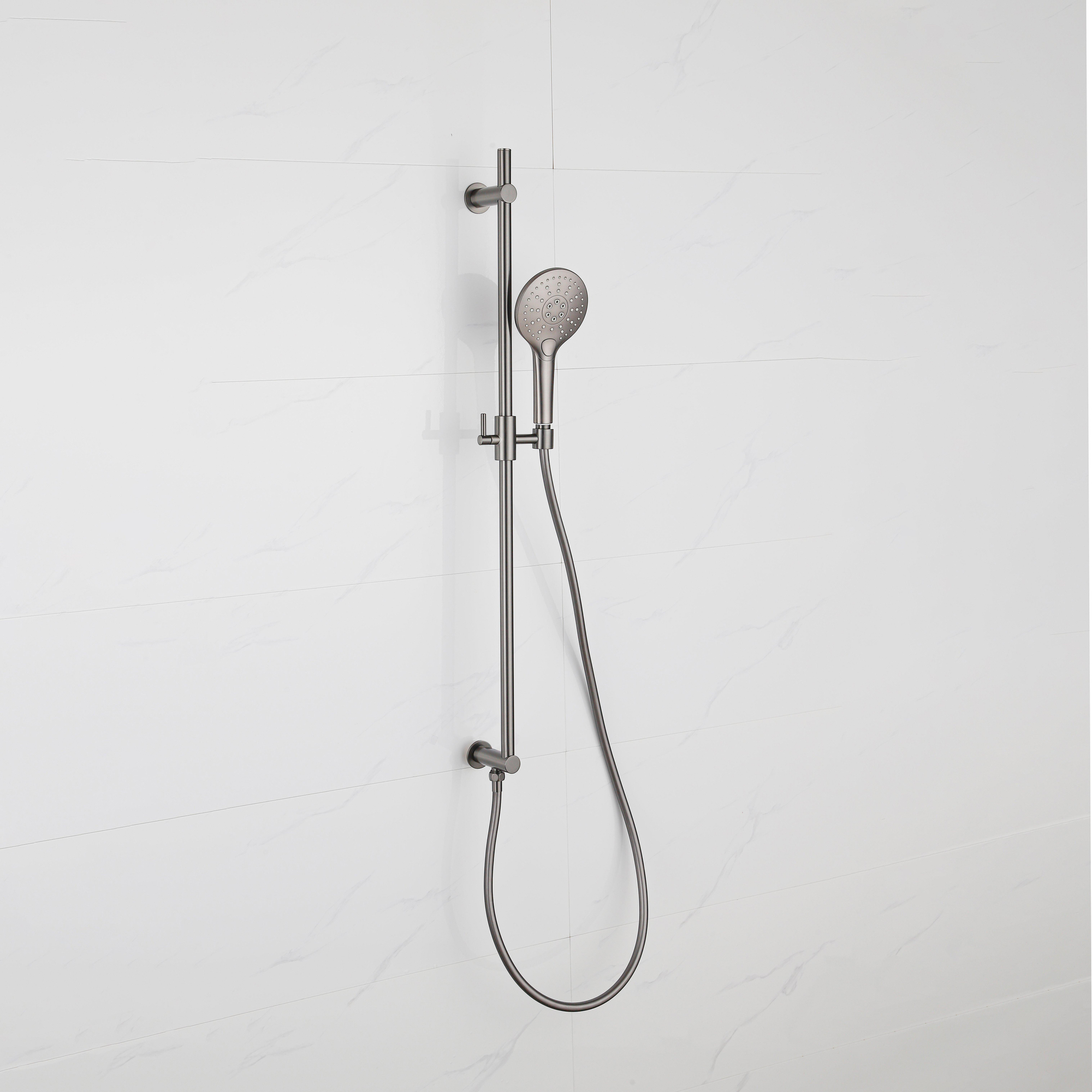 Fugaflow Eccelente Sobrado Glijstangset - geïntegreerde wandaansluitbocht - doucheslang glad- ronde handdouche - Geborsteld Gunmetal PVD