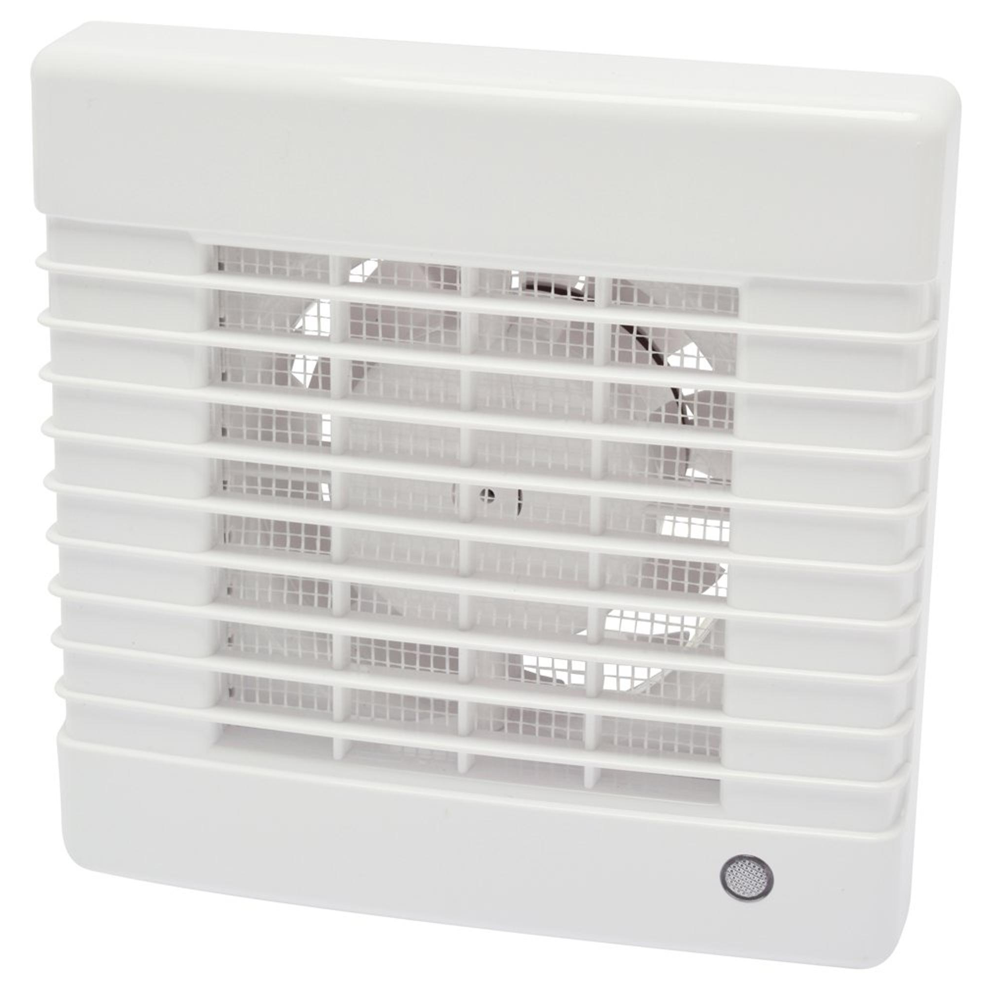 Sanivesk Standaard ventilator - Ø12.5 - Op (licht)schakelaar - Vierkant - Wit
