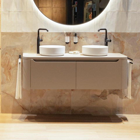 HR badmeubelen Juice Wastafelonderkast met topblad - 140x45x40cm - ronde hoeken - 2 lades - beige mat