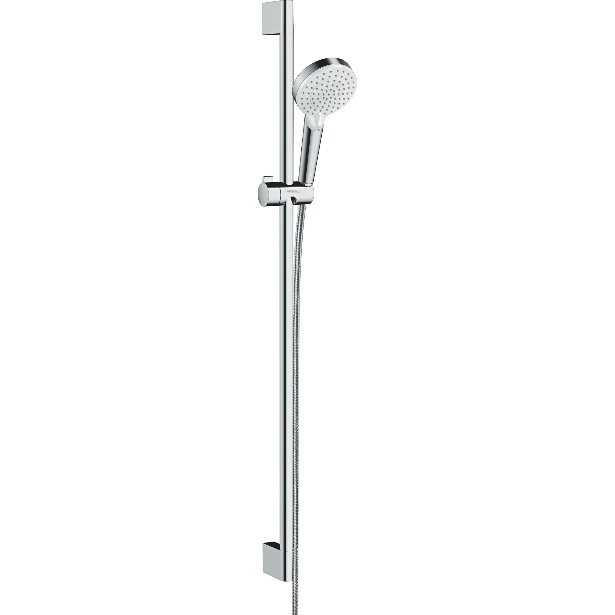 De moderne combinatie van stralend chroomoppervlak en witte straalplaat zorgt voor een interessant contrast. Het hoogwaardige, frisse design van de handdouche en de tijdloos elegante glijstangen passen harmonisch in iedere badkamer.