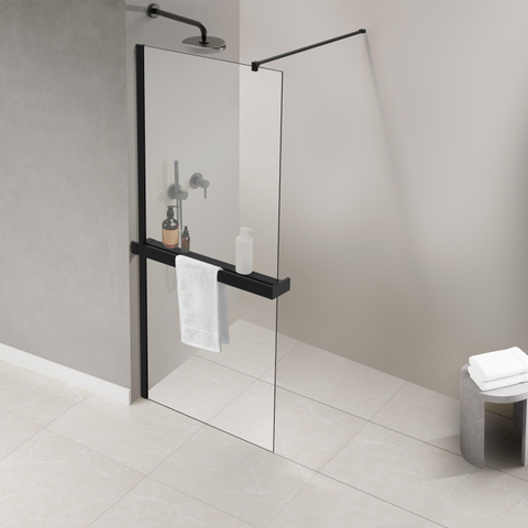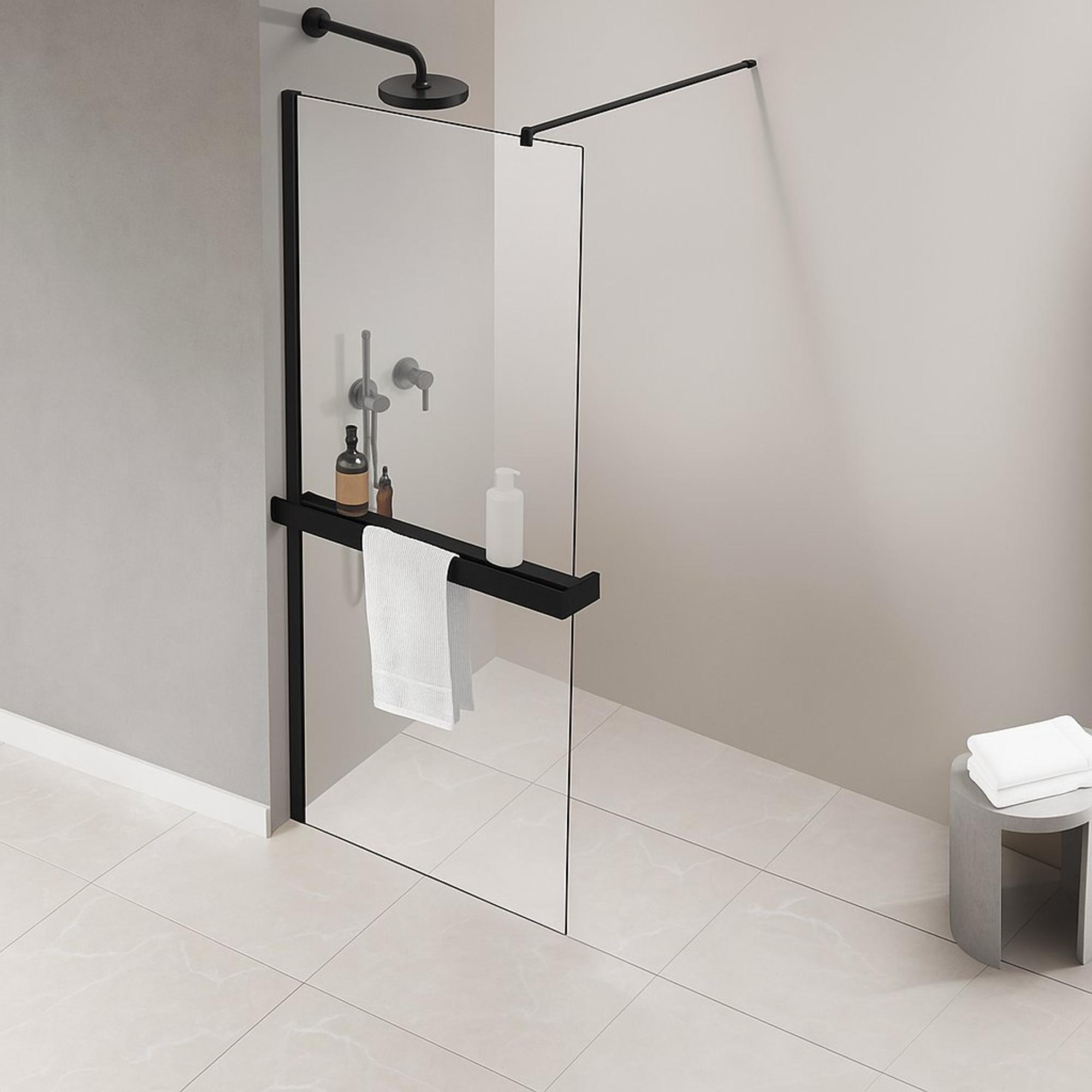 Fortifura Galeria handdoekrek voor inloopdouche - klemmen - inkortbaar - mat zwart