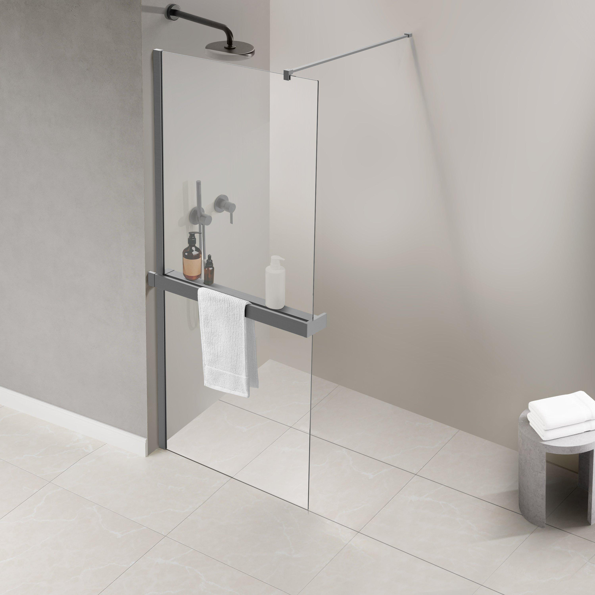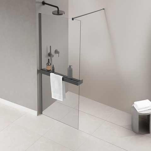 Fortifura Galeria handdoekrek voor inloopdouche - klemmen - inkortbaar - geborsteld gunmetal (antraciet)
