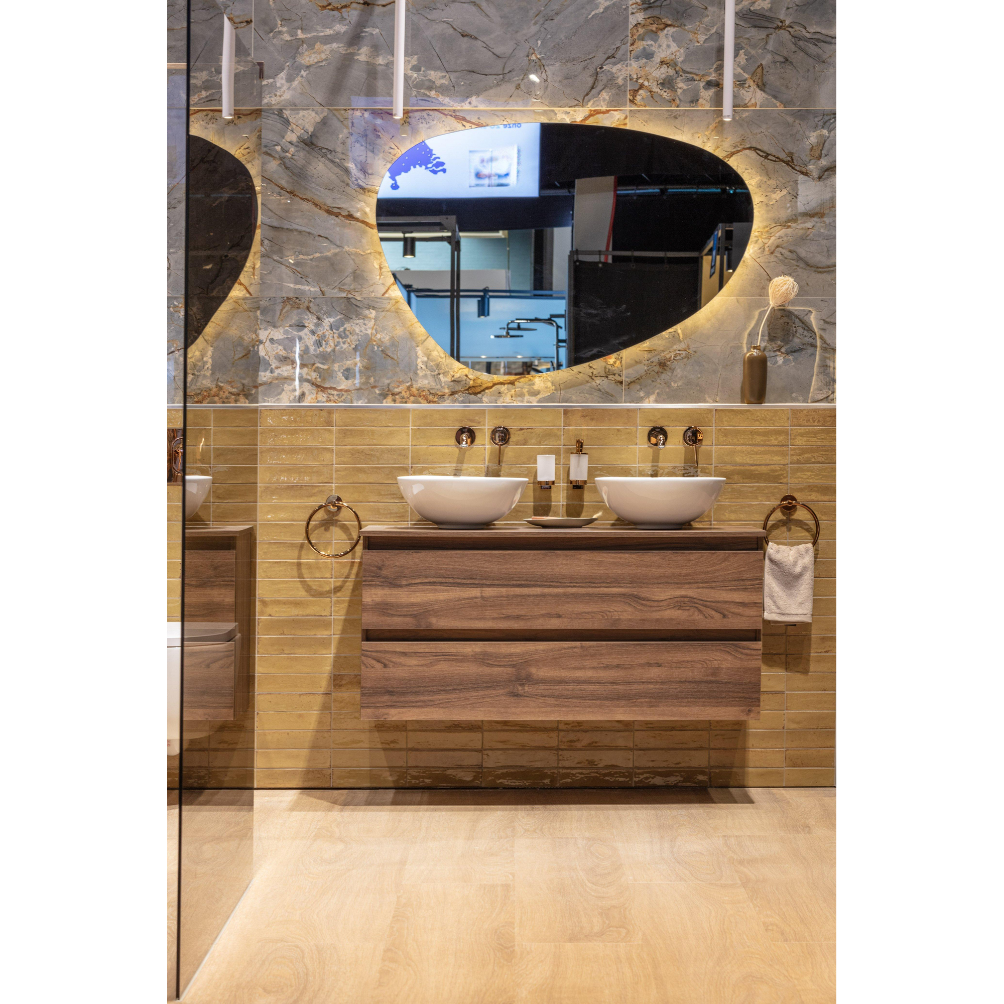 De Adema Chaci Badkameronderkast straalt stijl en elegantie uit dankzij zijn slanke ontwerp en greeploze afwerking. Het noten hout voegt warmte en karakter toe aan de badkamer, terwijl de 2 lades voldoende opbergruimte bieden voor al je badkamerbenodigdheden. Deze kast is perfect voor diegenen die op zoek zijn naar een eigentijdse en verfijnde uitstraling in hun badkamer.