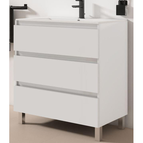 Adema Chaci PLUS Wastafelonderkast - 80x86x46cm - 3 lades - Geintegreerde greep - MDF - mat wit
