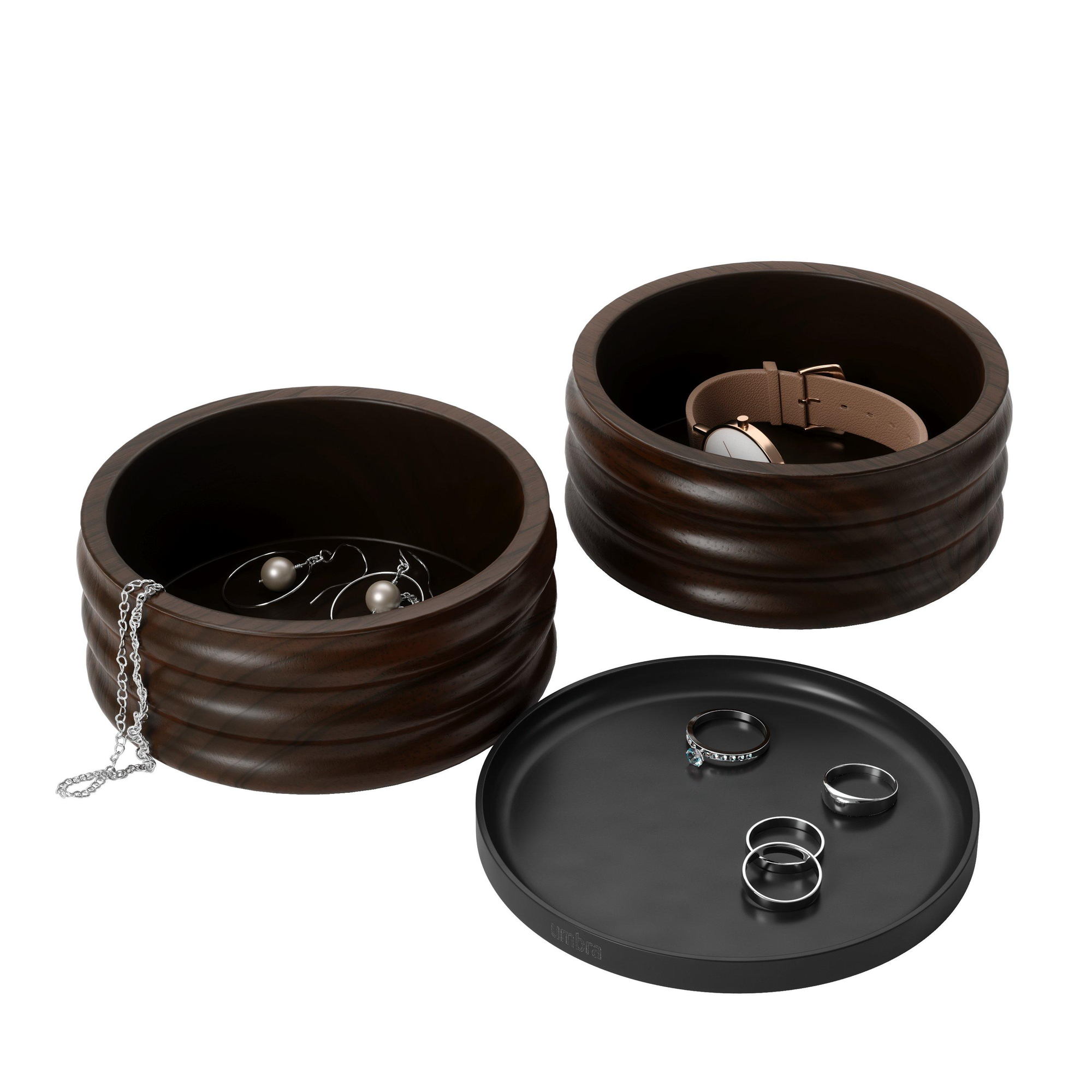 Umbra Tesora Sieradendoos - 13x13x12cm - zwart/walnoot