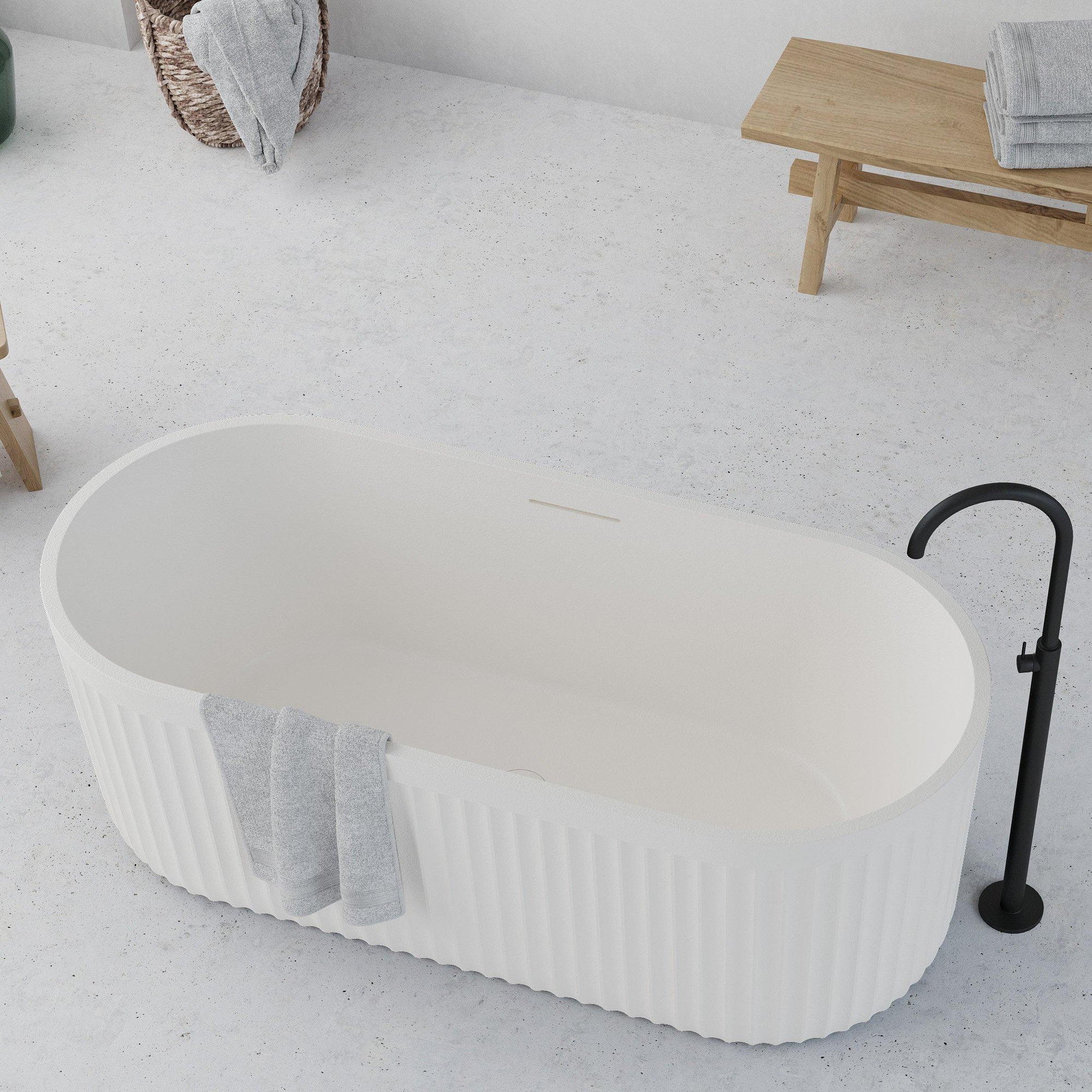 Ervaar pure luxe met dit Ideavit ARCHTEC-WH Vrijstaand Bad. De ruime afmetingen van 170x75x60cm bieden voldoende ruimte om comfortabel te kunnen baden. Het Rock Texture oppervlak voelt niet alleen prettig aan, maar zorgt ook voor een luxe uitstraling. De overloopgat en klikwaste zijn hoogwaardig afgewerkt en dragen bij aan de exclusieve uitstraling van dit bad. Met de verstelbare poten kun je het bad eenvoudig aanpassen aan jouw wensen, waardoor je kunt genieten van een luxueuze badervaring.