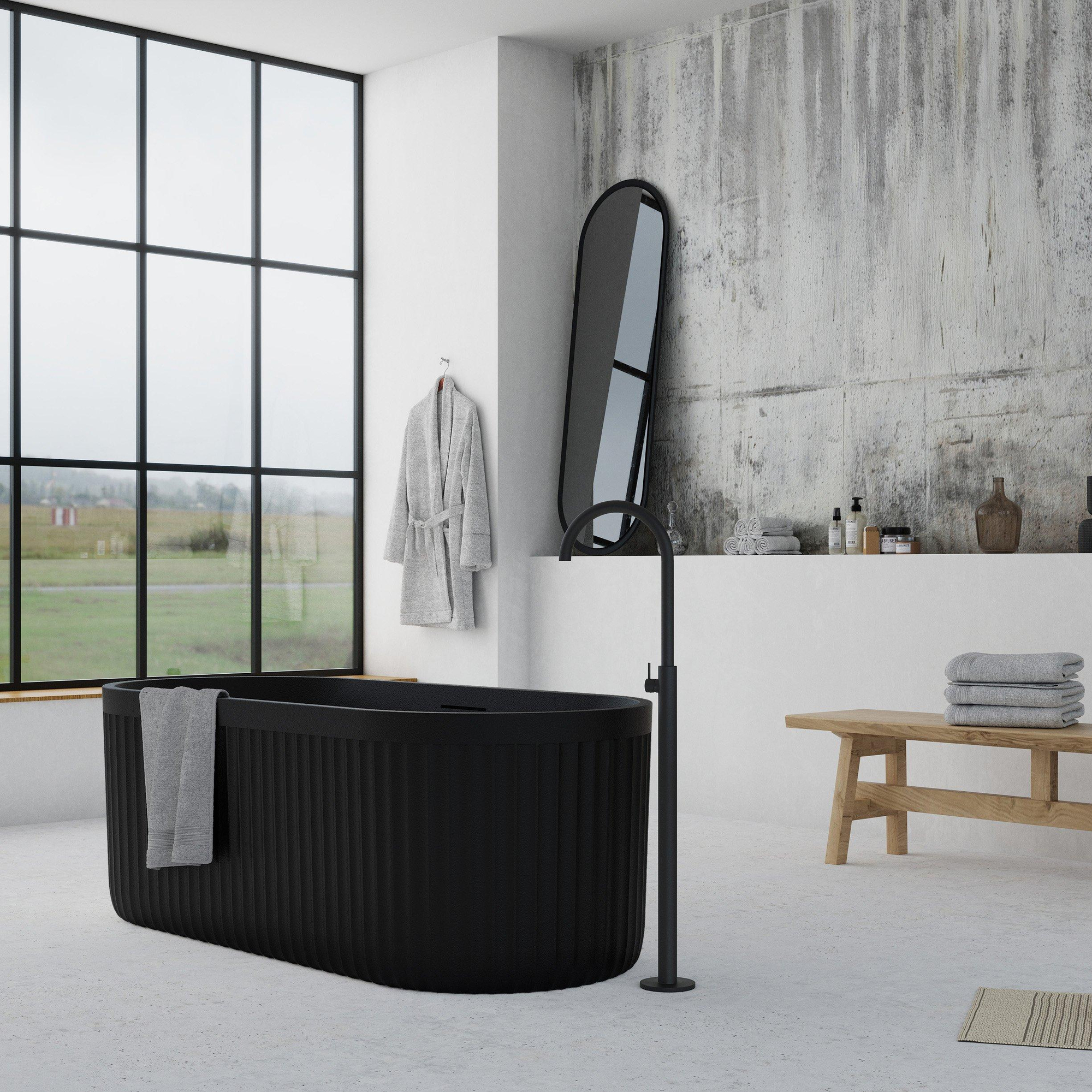 Ideavit ARCHTEC-BLK Vrijstaand Bad - 170x75x60cm - Rock Texture - overloopgat - klikwaste - met verstelbare poten - zwart