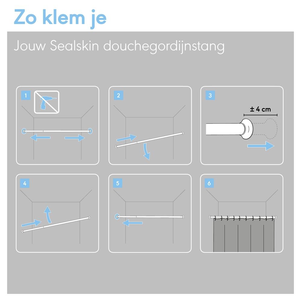 Sealskin Douchegordijnstang - 70-115cm - zwart