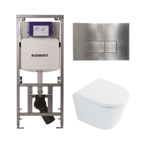 QeramiQ Dely Toiletset - 36.3x51.7cm - diepspoel - rimless - Geberit UP320 Burda inbouwreservoir - softclose toilet zitting 35 mm - steel bedieningsplaat - rechthoekige knoppen - wit glans