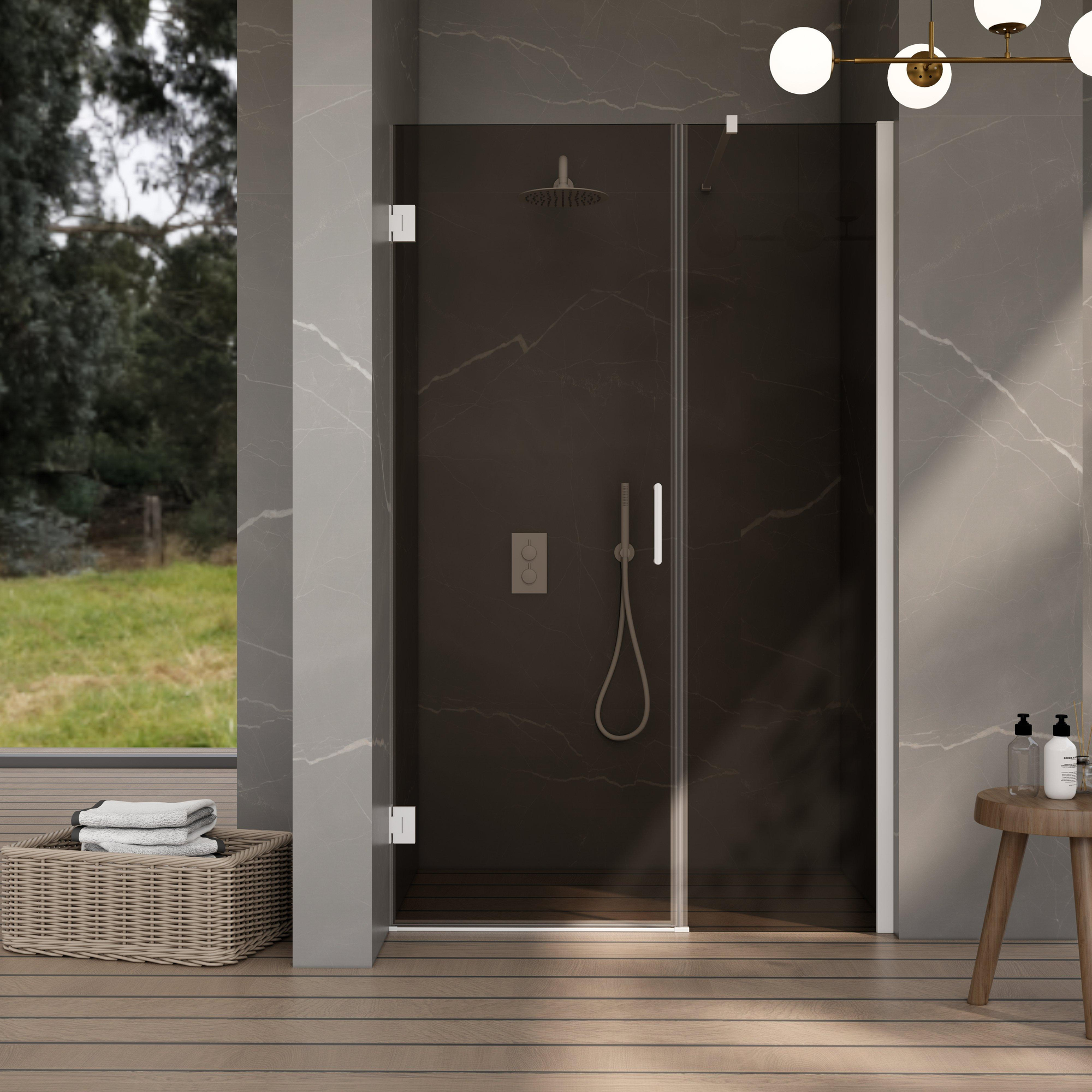 Ervaar de ultieme combinatie van stijl en functionaliteit met deze stijlvolle douchecabine. Het scharnierende deursysteem zorgt voor een soepele en geruisloze werking, terwijl de elegante deurgreep een vleugje luxe toevoegt aan het geheel. Het vlakke ontwerp en het rookglazen paneel stralen een moderne en minimalistische uitstraling uit, terwijl de matte witte afwerking een tijdloze elegantie toevoegt aan jouw badkamer.