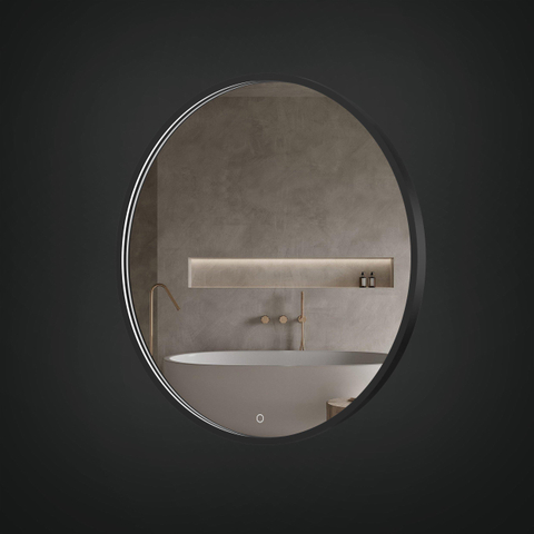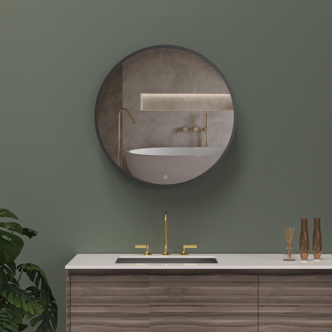 Arcqua Framed Spiegel - 80cm - rond - front LED - mat zwart