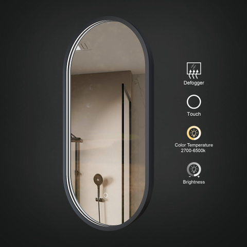 Arcqua Framed Spiegel - 40x100cm - ovaal - verticaal - front LED - mat zwart