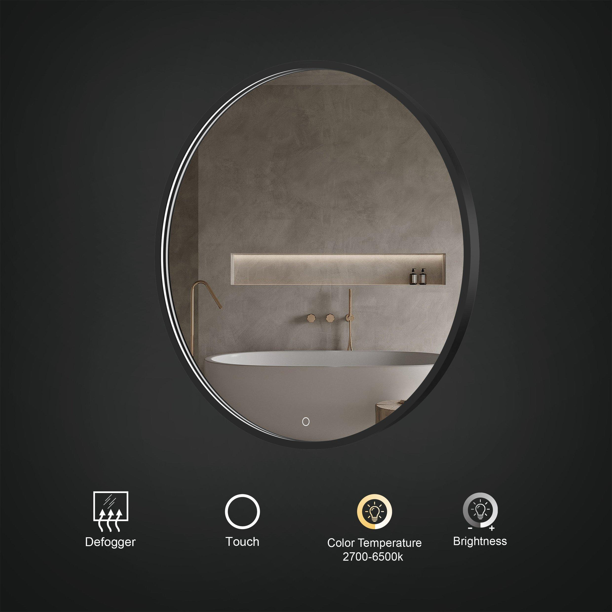 Arcqua Framed Spiegel - 100cm - rond - front LED - mat zwart