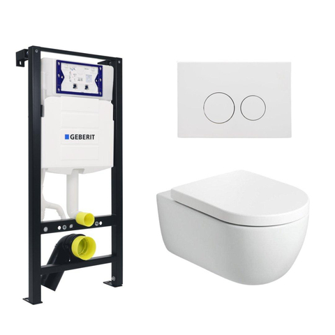 Plieger Kansas Toiletset - UP320 inbouwreservoir - wandcloset - zitting - softclose - mat witte bedieningsplaat - ronde knoppen - mat wit