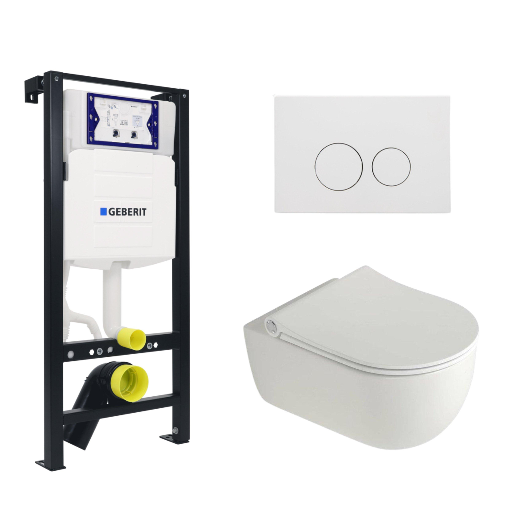 Plieger Kansas Toiletset - UP320 inbouwreservoir - wandcloset - pressalit slim zitting - softclose - mat witte bedieningsplaat - ronde knoppen - mat wit