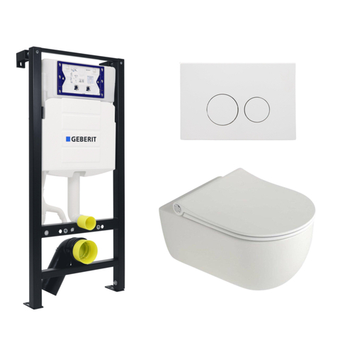Plieger Kansas Toiletset - UP320 inbouwreservoir - compact - wandcloset - pressalit slim zitting - softclose - mat witte bedieningsplaat - ronde knoppen - mat wit