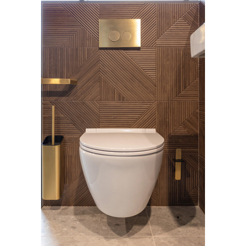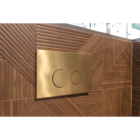 De QeramiQ Push Metal Bedieningsplaat kan worden omschreven als een echt pronkstuk in je badkamer. De goud geborstelde afwerking geeft een warme en luxe uitstraling, terwijl de ronde knoppen zorgen voor een subtiele maar opvallende touch. Deze bedieningsplaat is ontworpen met oog voor detail en vakmanschap, waardoor het niet alleen functioneel is, maar ook een esthetisch hoogtepunt in de ruimte vormt.