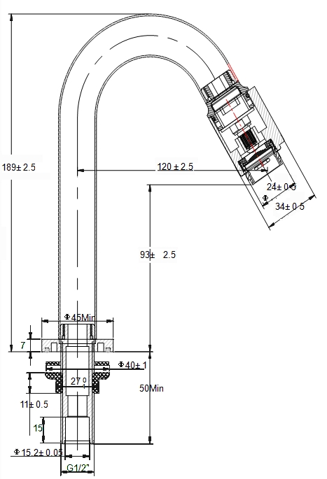 | Hoogte kraan | Standaard |