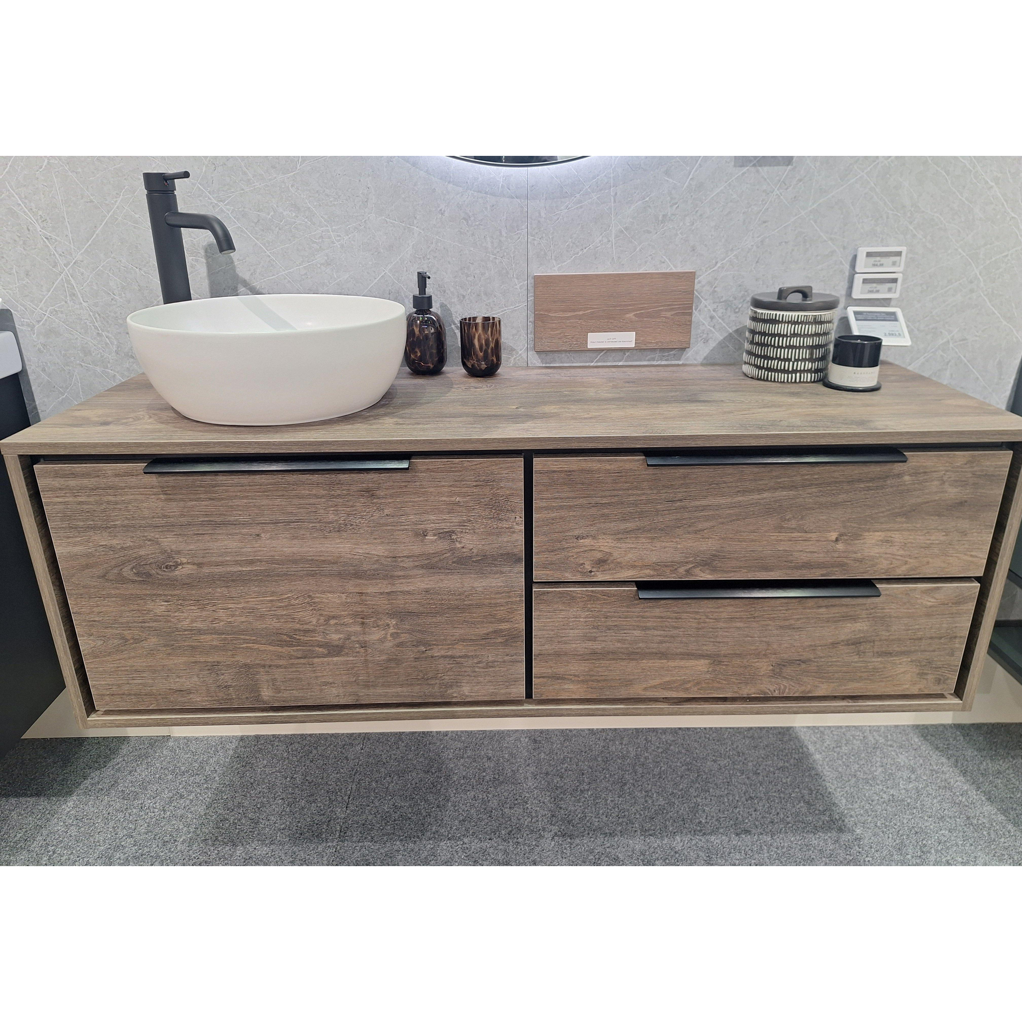 HR Badmeubelen Rize wastafelkast 1 hoge lade links 70cm 2 laden rechts 70cm greep naar keuze 140 x 45 x 45 cm met topblad en handgrepen zwart espresso espresso SHOWROOMMODEL