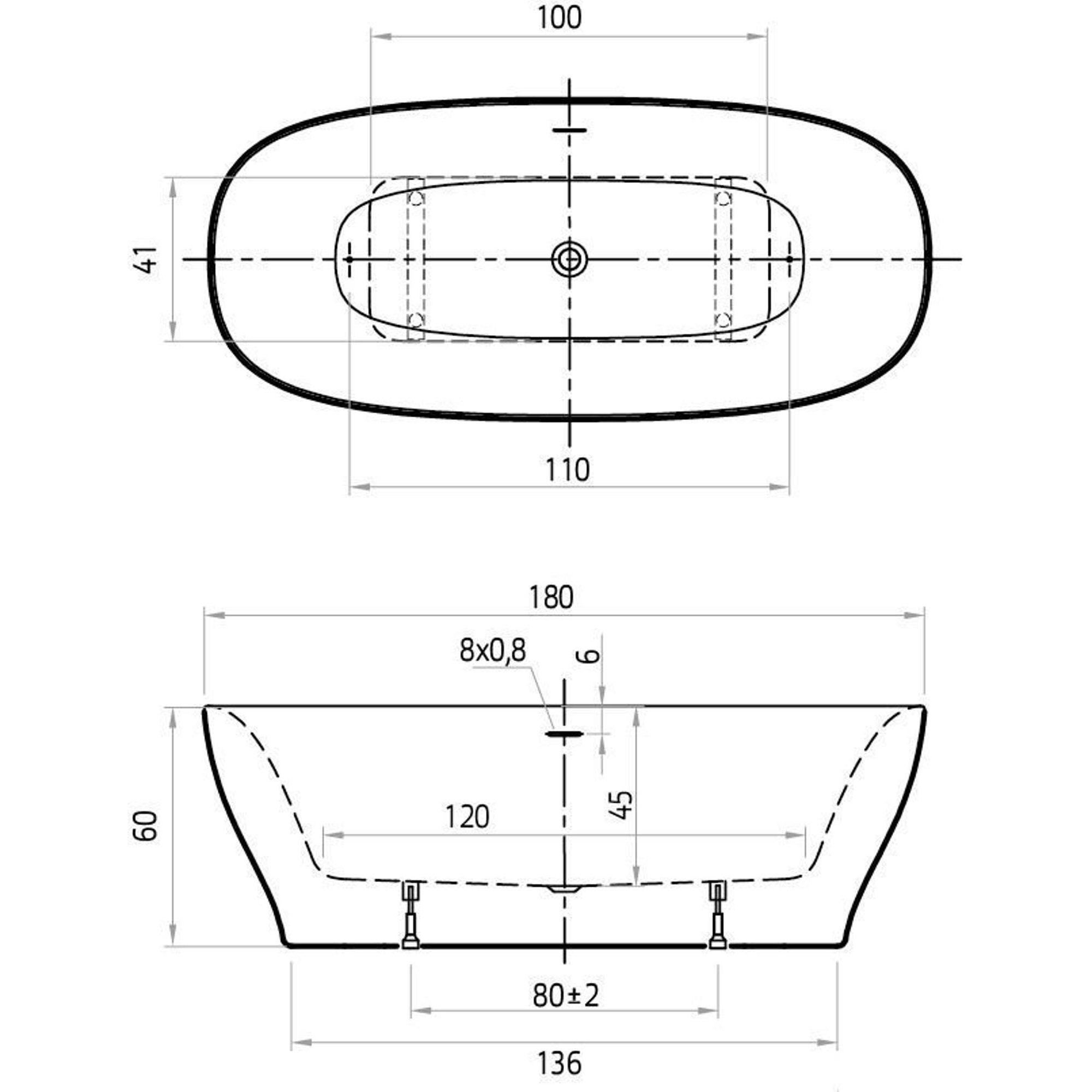 Dit vrijstaande bad straalt een majestueuze uitstraling uit dankzij zijn royale afmetingen en elegante vormgeving. De 180x80cm afmetingen bieden voldoende ruimte om comfortabel te ontspannen en tot rust te komen na een lange dag. De witte matte afwerking voegt een vleugje luxe toe aan elke badkamer, waardoor dit bad een echte eyecatcher is.