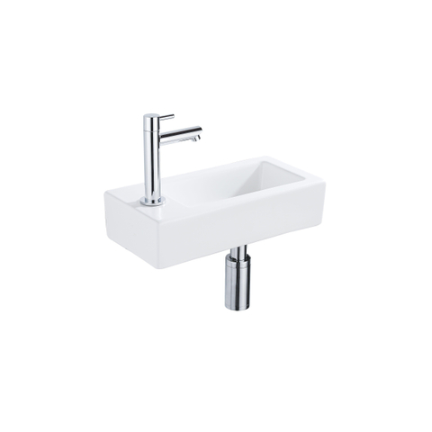 De QeramiQ Fuente Fonteinset combineert stijl met functionaliteit. Het kraangat aan de linkerkant maakt het gemakkelijk om een fonteinkraan te installeren, terwijl de afvoerplug zorgt voor een efficiënte afvoer van water. De verlaagde sifon voorkomt ongewenste geurtjes en zorgt voor een opgeruimde uitstraling. Deze fonteinset is niet alleen een visueel aantrekkelijke toevoeging aan uw badkamer, maar ook een praktische en functionele keuze.