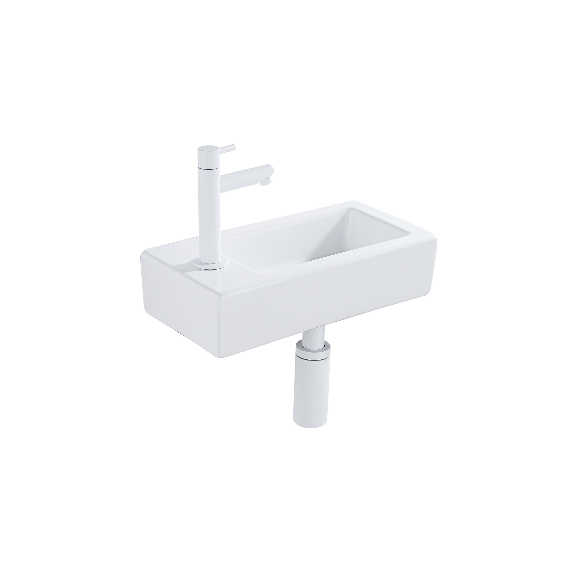 QeramiQ Fuente Fonteinset - 37.5x18.5x9cm - keramiek - kraangat links - fonteinkraan mat wit - afvoerplug - verlaagd sifon - Glans wit
