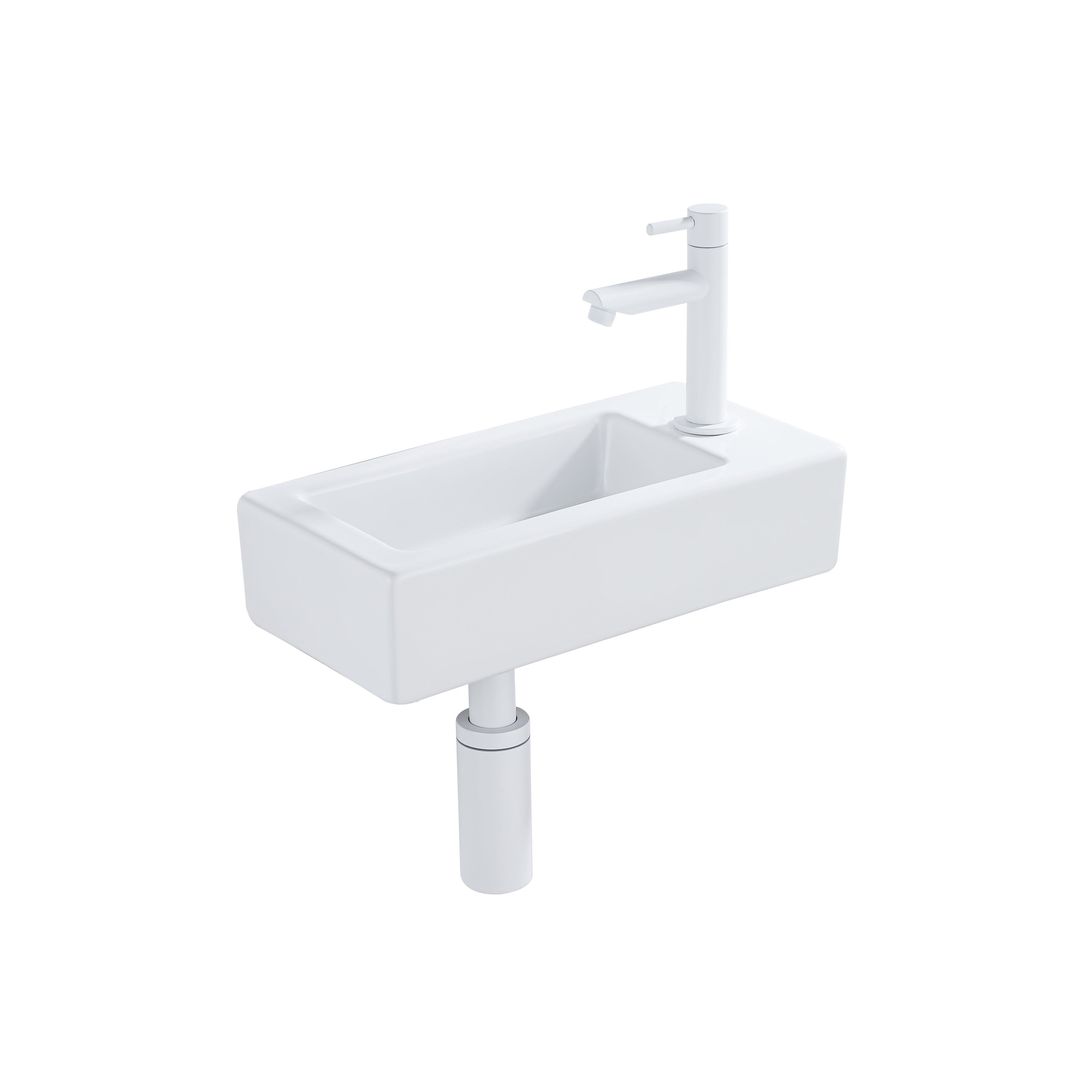 Dit fonteinset is ontworpen met een modern tintje, perfect voor diegenen die streven naar een eigentijdse uitstraling in hun badkamer. De strakke lijnen en verlaagde sifon geven een minimalistische en stijlvolle uitstraling aan de ruimte. De combinatie van mat wit en glans wit zorgt voor een harmonieus contrast dat de aandacht trekt.