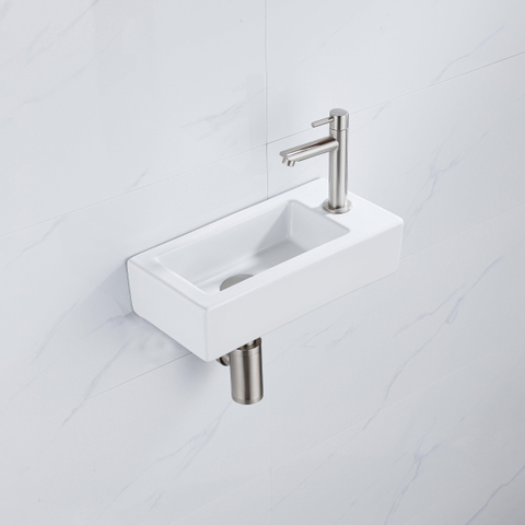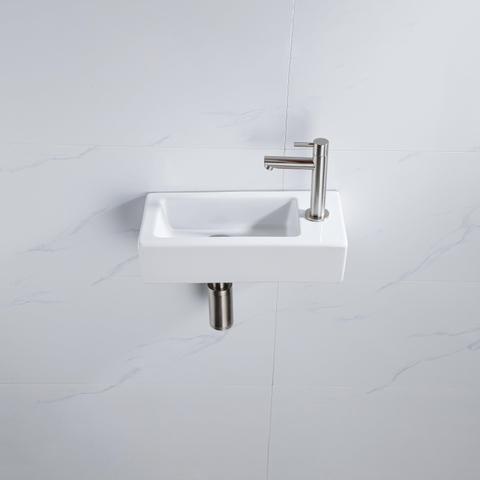 Naast zijn esthetische waarde is deze fonteinset ook uiterst functioneel. Het kraangat aan de rechterkant zorgt voor een handige en praktische indeling, terwijl de compacte afmetingen ervoor zorgen dat het perfect past in zelfs de kleinste badkamers. De fontein is ontworpen met oog voor detail en gebruiksgemak, waardoor het een ideale keuze is voor dagelijks gebruik.