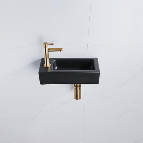 De QeramiQ Fuente Fonteinset is een praktische toevoeging aan elke badkamer. Met zijn compacte afmetingen van 37.5x18.5x9cm past deze fonteinset perfect in kleine ruimtes, zoals gastenbadkamers of toiletruimtes. Het kraangat aan de linkerkant zorgt voor een handige installatie en de fonteinkraan van geborsteld messing voegt een vleugje elegantie toe aan het geheel. De mat zwarte afwerking geeft een moderne uitstraling aan de fonteinset, terwijl de meegeleverde afvoerplug en verlaagde sifon zorgen voor een efficiënte afvoer van water.