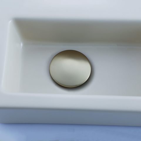 QeramiQ Fuente Fonteinset - 37.5x18.5x9cm - keramiek - kraangat rechts - fonteinkraan geborsteld messing - afvoerplug - verlaagd sifon - Mat Beige