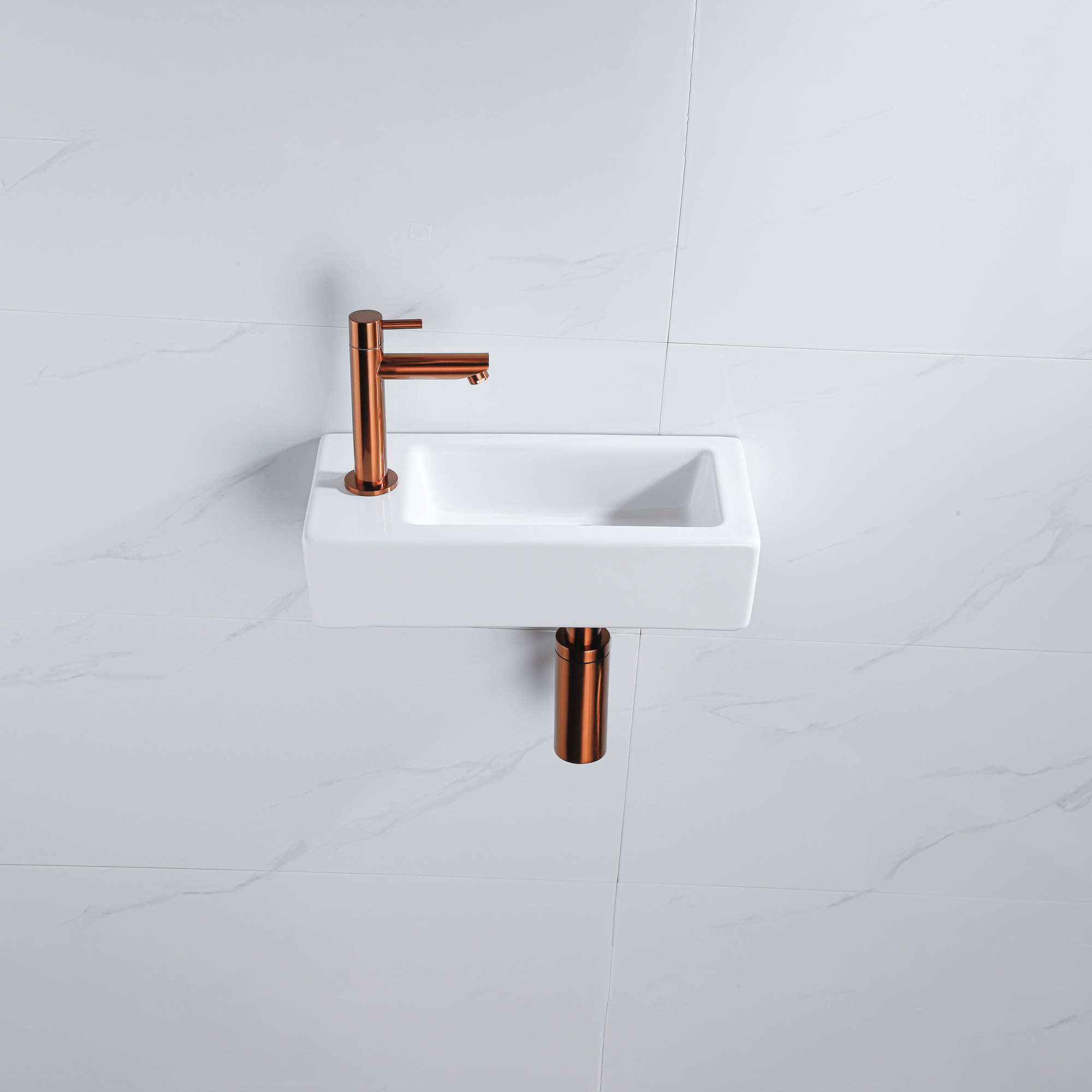De QeramiQ Fuente Fonteinset straalt luxe uit met zijn glanzend witte keramiek en geborsteld koperen fonteinkraan. Deze fonteinset voegt een vleugje elegantie toe aan elke badkamer. Het kraangat aan de linkerkant zorgt voor een moeiteloze waterstroom, terwijl de verlaagde sifon en afvoerplug zorgen voor een efficiënte afvoer. Met zijn afmetingen van 37.5x18.5x9cm past deze fonteinset perfect in kleine ruimtes en is ideaal voor gastenbadkamers of toiletruimtes.