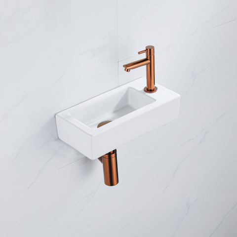 De QeramiQ Fuente Fonteinset is een stijlvolle toevoeging aan elke badkamer. Met zijn strakke lijnen en moderne uitstraling brengt dit fonteinset een vleugje elegantie in de ruimte. Het mat witte keramiek zorgt voor een tijdloze en verfijnde look, terwijl het kraangat aan de rechterkant en de fonteinkraan in geborsteld koper een vleugje luxe toevoegen. Dit fonteinset is perfect voor wie op zoek is naar een combinatie van functionaliteit en design.