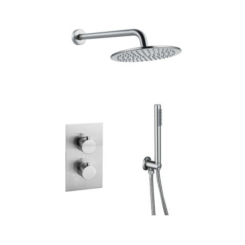 Fortifura Calvi Inbouw Regendoucheset - thermostatisch - wandarm - 25cm hoofddouche - staaf handdouche - gladde doucheslang - Geborsteld RVS PVD (RVS) SW1233158