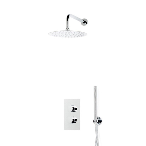 Fortifura Calvi Inbouw Regendoucheset - thermostatisch - wandarm - 25cm hoofddouche - staaf handdouche - metalen doucheslang - chroom SW1233176