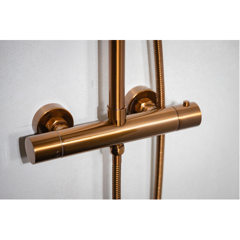 De afwerking in geborsteld koper PVD geeft de doucheset een luxe uitstraling en is bovendien zeer duurzaam en onderhoudsvriendelijk. Dit hoogwaardige materiaal is bestand tegen krassen en corrosie, waardoor jouw doucheset er jarenlang prachtig uitziet.
