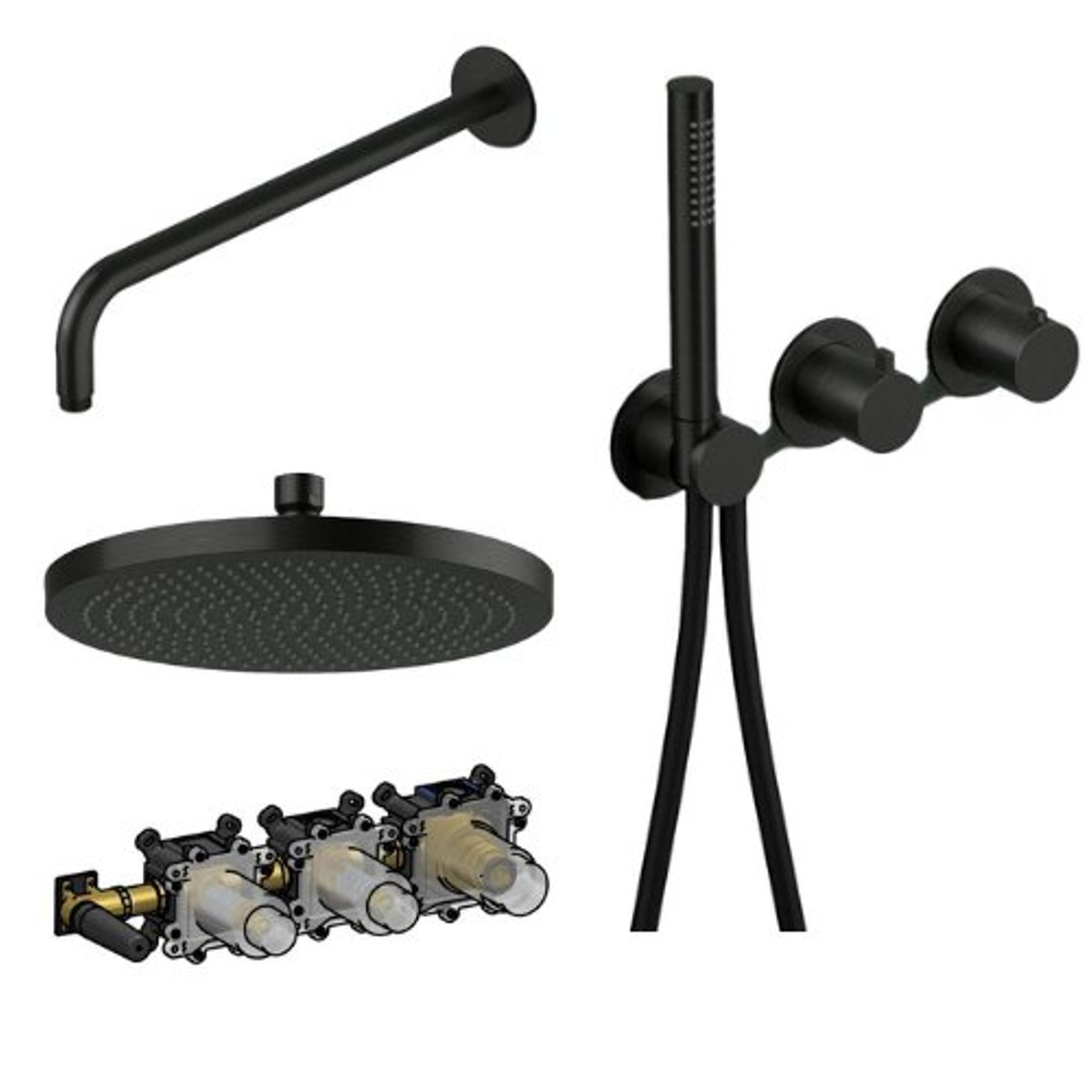 Hotbath Ace Regendoucheset - inbouwdeel - 2 weg - omstel - ronde hoofddouche - 23cm - handdouche - doucheslang - mat zwart PVD