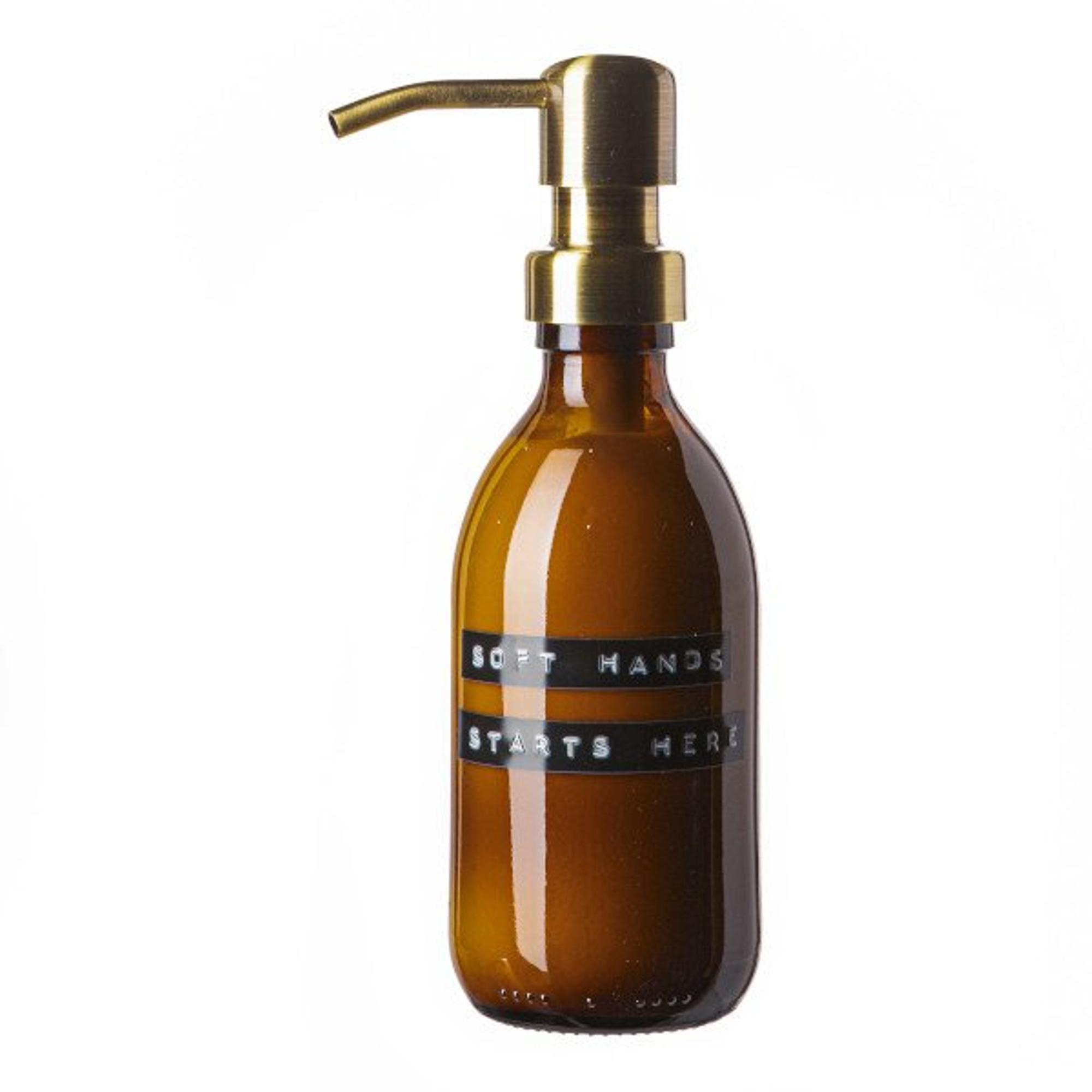Wellmark Handcreme bruin glas messing pomp 250ml tekst SOFT HANDS STARTS HERE