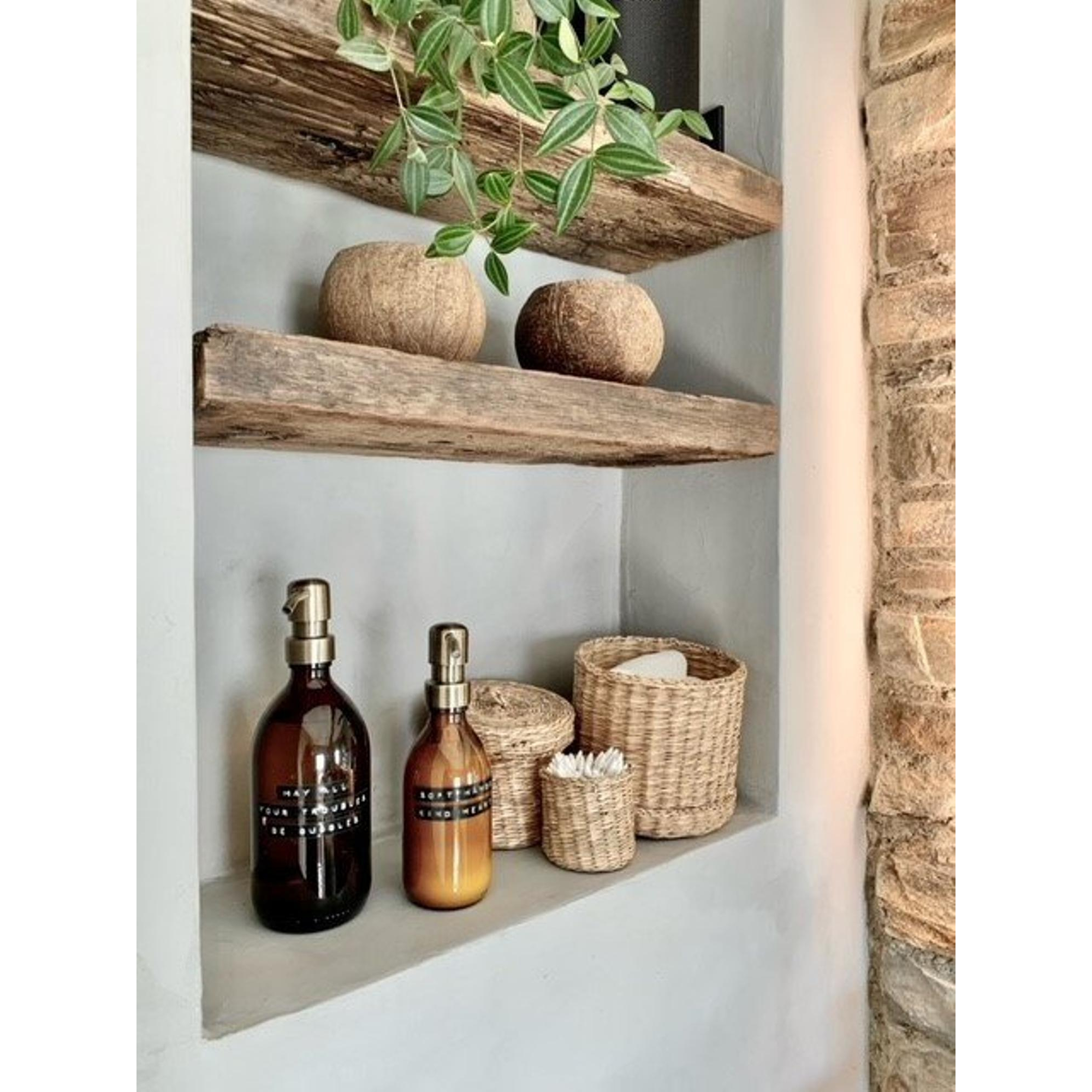 Stijlvol, duurzaam en gemaakt met liefde voor onze leefomgeving. Deze handcrème pomp staat stijlvol in je badkamer, keuken of toiletruimte. Dit model met een gouden roestvrijstalen pomp is naast stijlvol ook nog eens duurzaam. Gemaakt van gerecycled, bruin glas en gevuld met natuurlijk handcrème met een Aloë Vera basis.