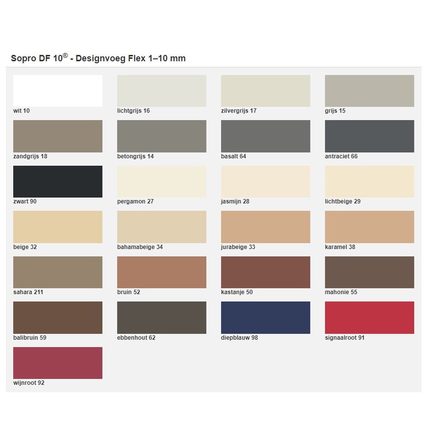 De Sopro DF 10 voegmortel staat bekend om zijn duurzaamheid en lange levensduur. Door zijn hoogwaardige samenstelling en sterke hechtingseigenschappen biedt deze voegmortel een langdurige bescherming tegen slijtage, vocht en chemische invloeden. Hierdoor blijven je tegeloppervlakken er jarenlang als nieuw uitzien, zonder dat je je zorgen hoeft te maken over regelmatig onderhoud of vervanging.