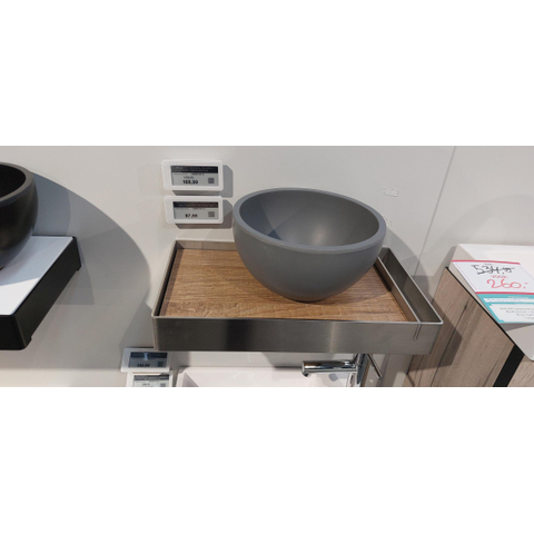 INK Jazz XS Fonteinframe RVS en INK Jazz XS waskom grijs en INK Jazz XS Inlegplateau eiken SHOWROOMMODEL