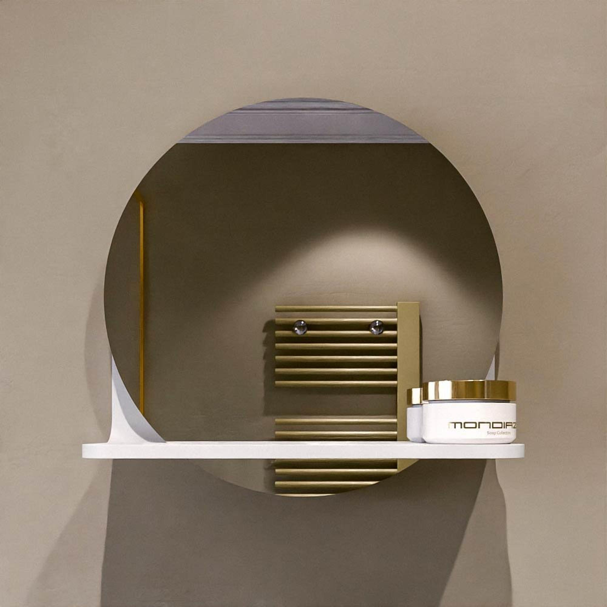 Mondiaz SPOT Badkamerspiegel - rond 30cm - spiegelplanchet - kleur Talc