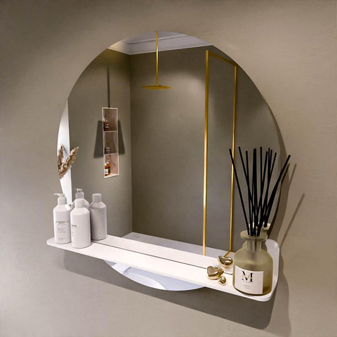 Geef uw ruimte een elegante en praktische Touch met deze ronde spiegel, waarbij de spiegel prachtig is verwerkt in een verfijnd planchet van Solid Surface. Het design is niet alleen functioneel, maar ook een stijlvolle toevoeging aan moderne interieurs, ideaal te combineren met onze badmeubel series, zoals de ALAN, de VICA en de TURE.