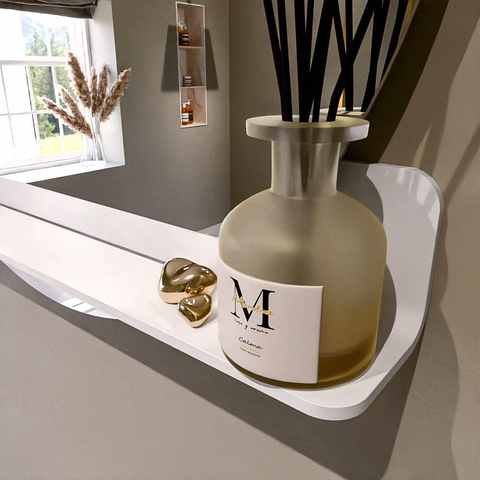 Beschikbaar in 17 effen kleuren die perfect passen bij elke inrichting. Solid Surface is krasbestendig, onderhoudsvriendelijk en garandeert een langdurige, luxueuze afwerking. Deze spiegel biedt de ideale combinatie van functionaliteit en design!
