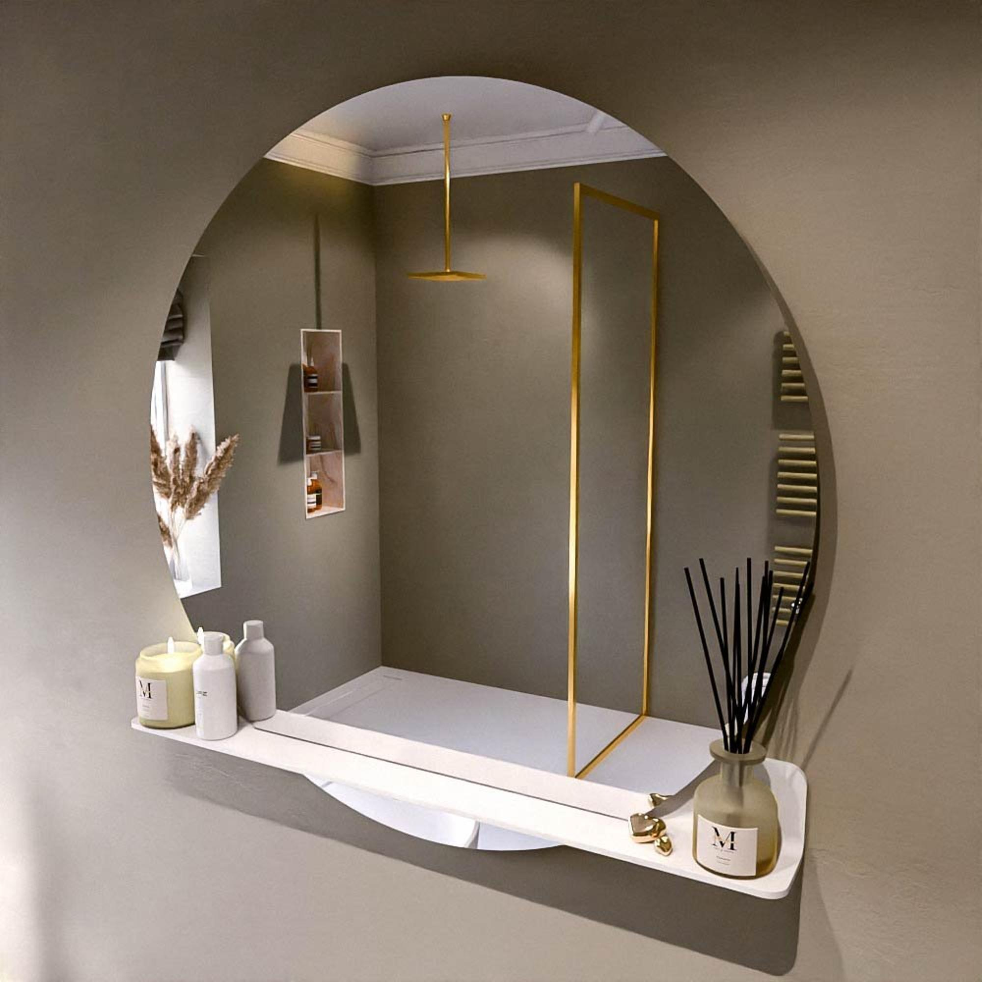 Geef uw ruimte een elegante en praktische Touch met deze ronde spiegel, waarbij de spiegel prachtig is verwerkt in een verfijnd planchet van Solid Surface. Het design is niet alleen functioneel, maar ook een stijlvolle toevoeging aan moderne interieurs, ideaal te combineren met onze badmeubel series, zoals de ALAN, de VICA en de TURE.