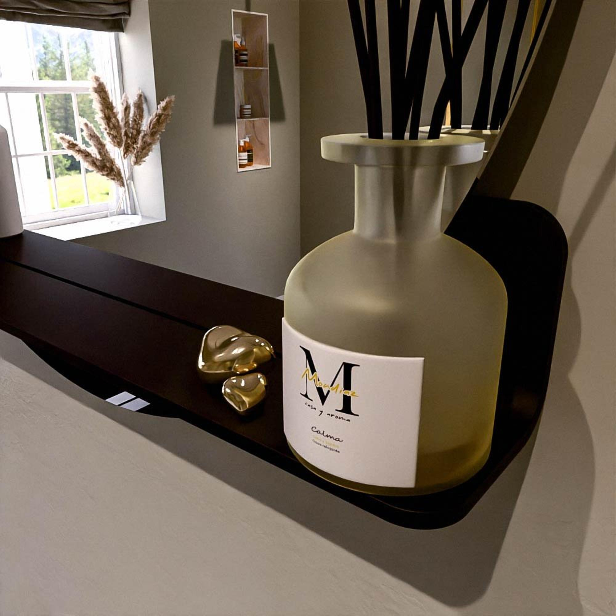 Het planchet, met zijn vloeiend afgeronde hoeken, biedt handige opbergruimte voor uw dagelijkse benodigdheden. De spiegel is subtiel verzonken in het planchet, wat zorgt voor een moderne en stijlvolle uitstraling.
