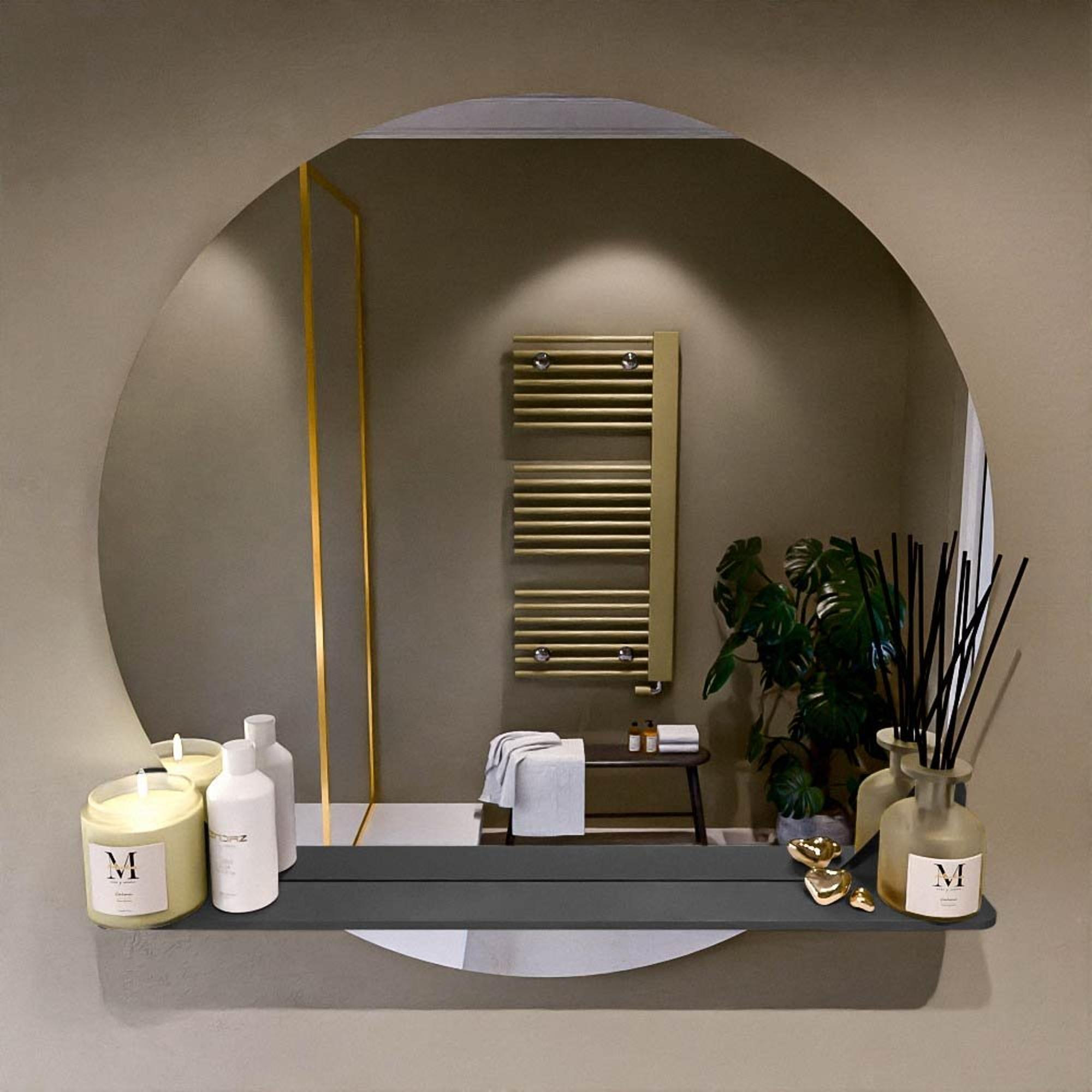 Mondiaz SPOT Badkamerspiegel - rond 90cm - spiegelplanchet - kleur Dark Grey