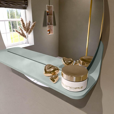 Beschikbaar in 17 effen kleuren die perfect passen bij elke inrichting. Solid Surface is krasbestendig, onderhoudsvriendelijk en garandeert een langdurige, luxueuze afwerking. Deze spiegel biedt de ideale combinatie van functionaliteit en design!